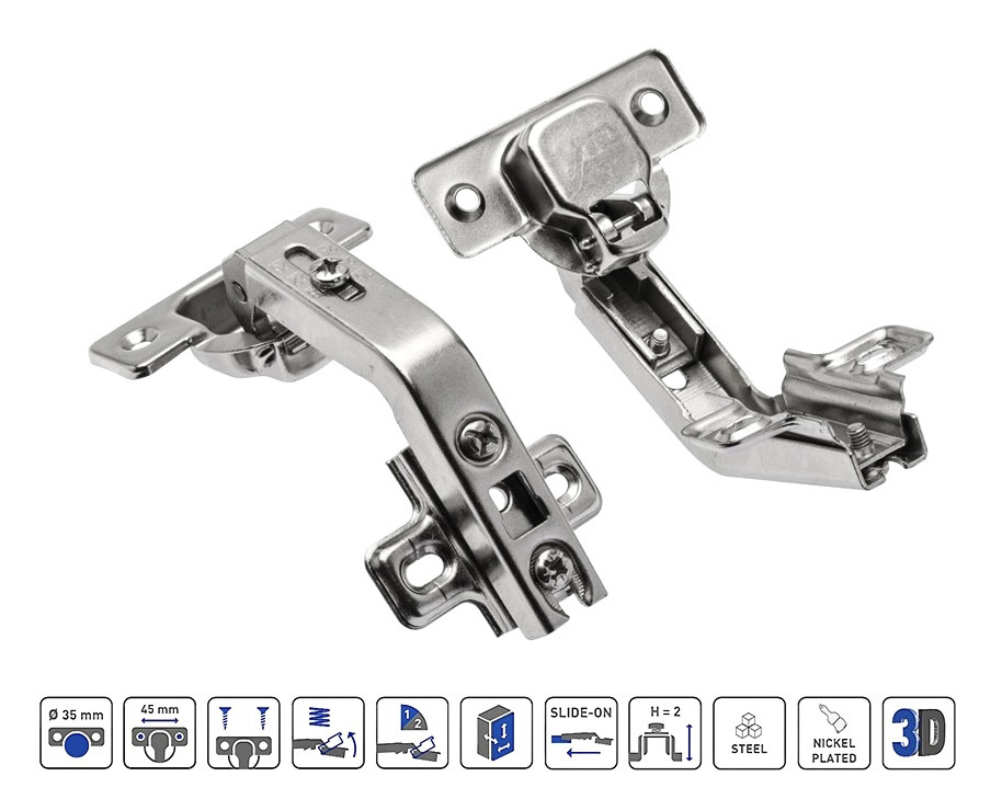 Завіса меблева кутова 135° GTV ZP-KT135H2BE без дотягу планка H=2